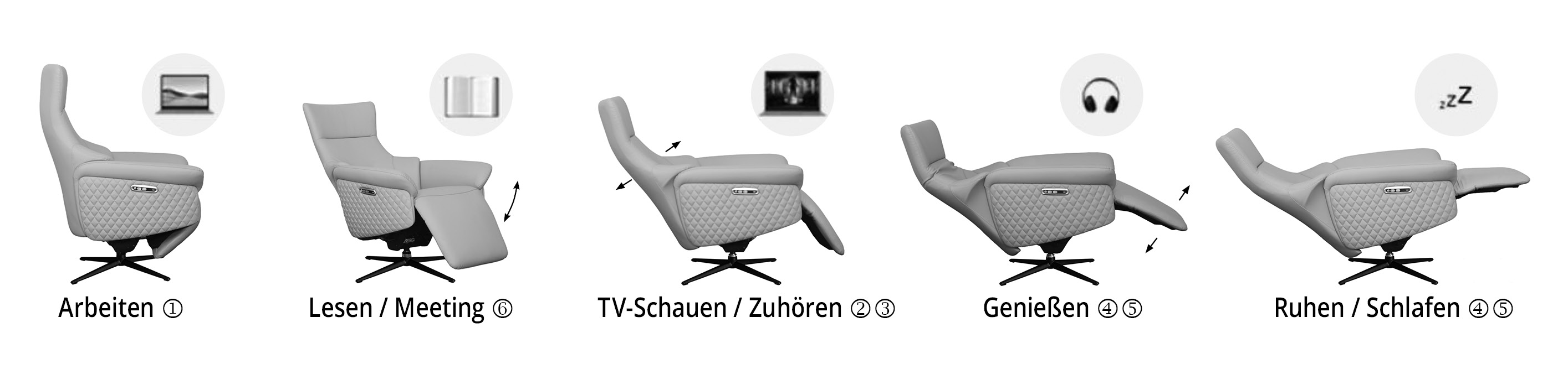 Genießen sie den einmaligen Luxus, höchste Qualität und Bequemlichkeit überall und jederzeit für Ihre körperliche Gesundheit einsetzen zu können. Lieferbar ist unser Sessel in vier Varianten.