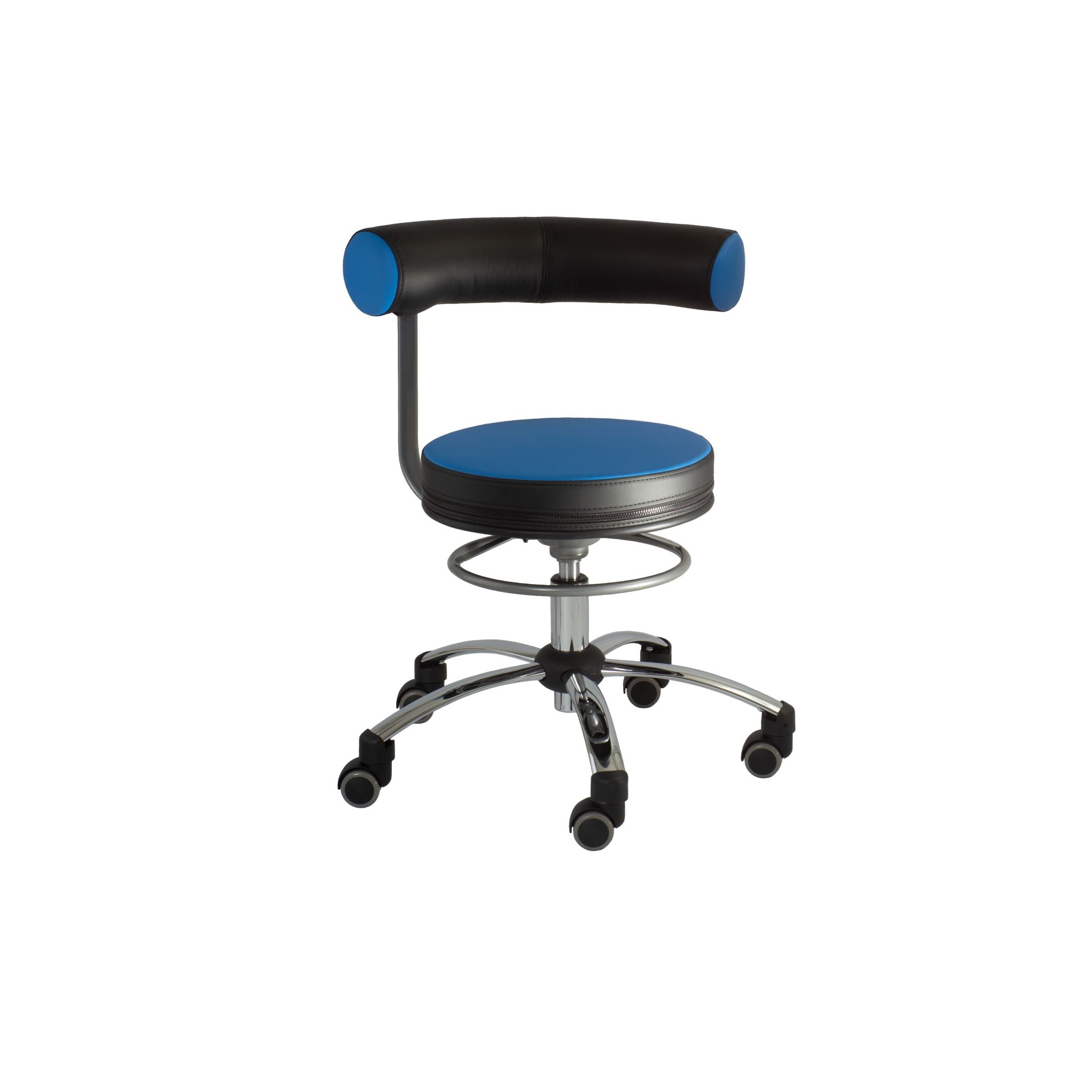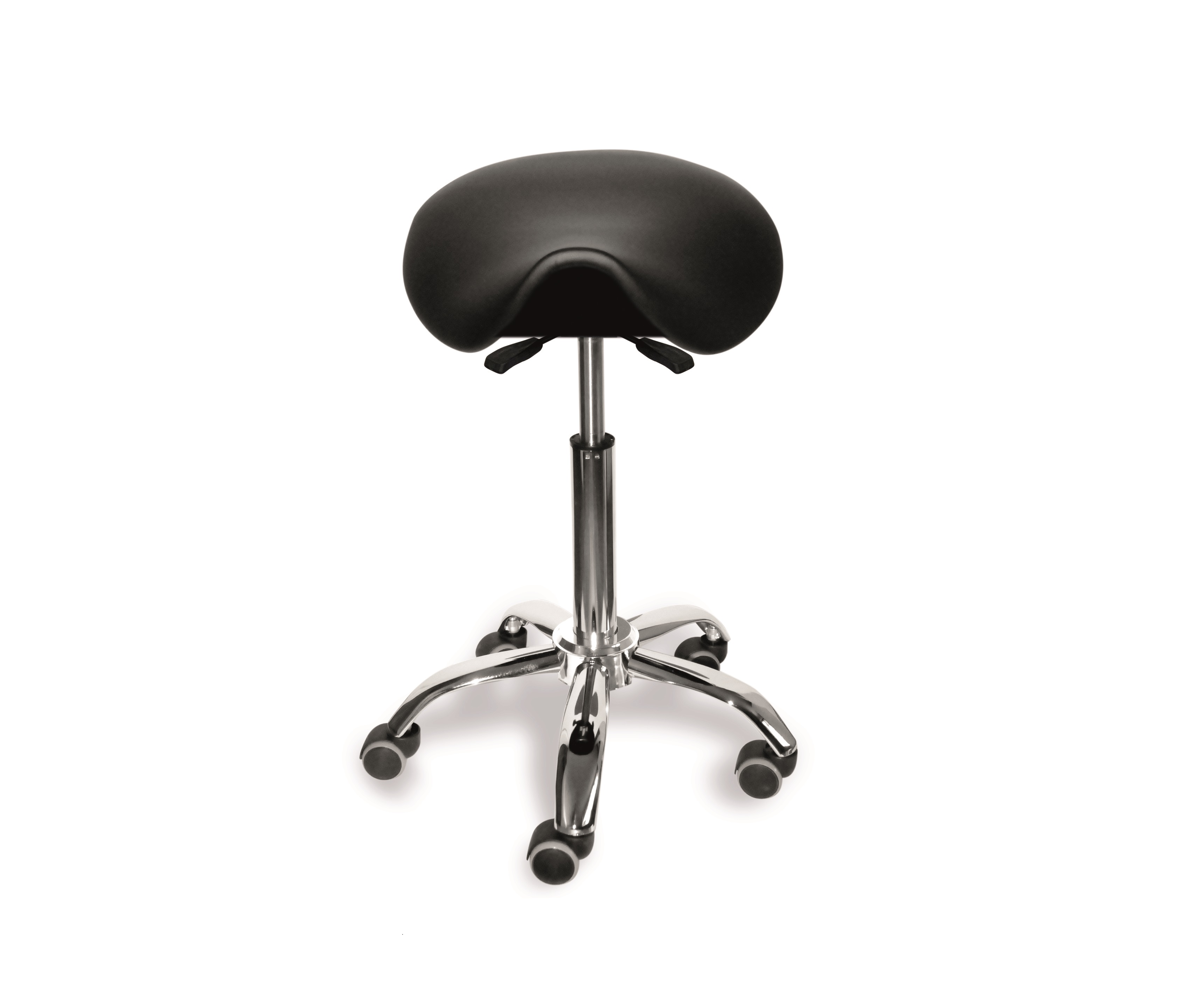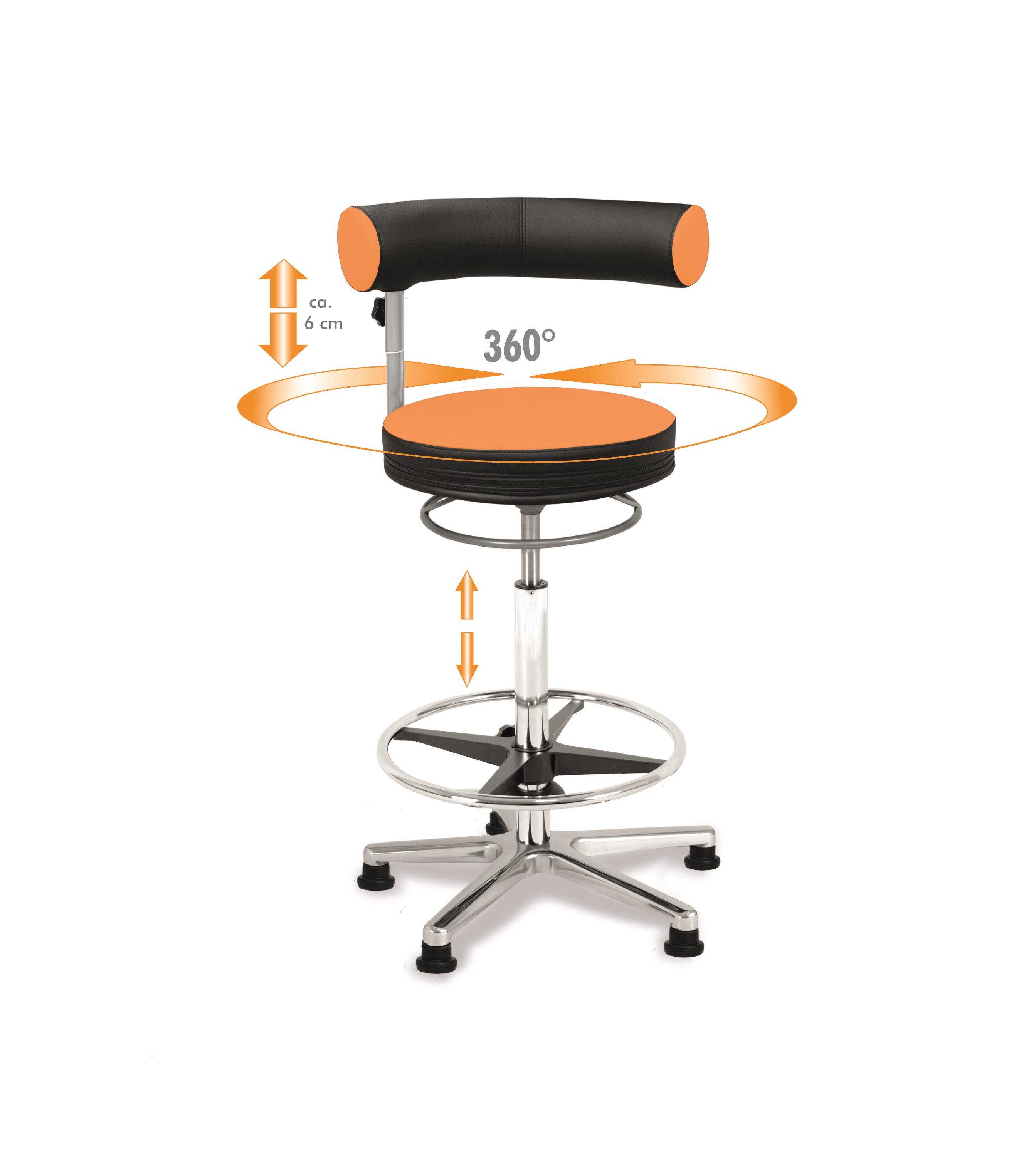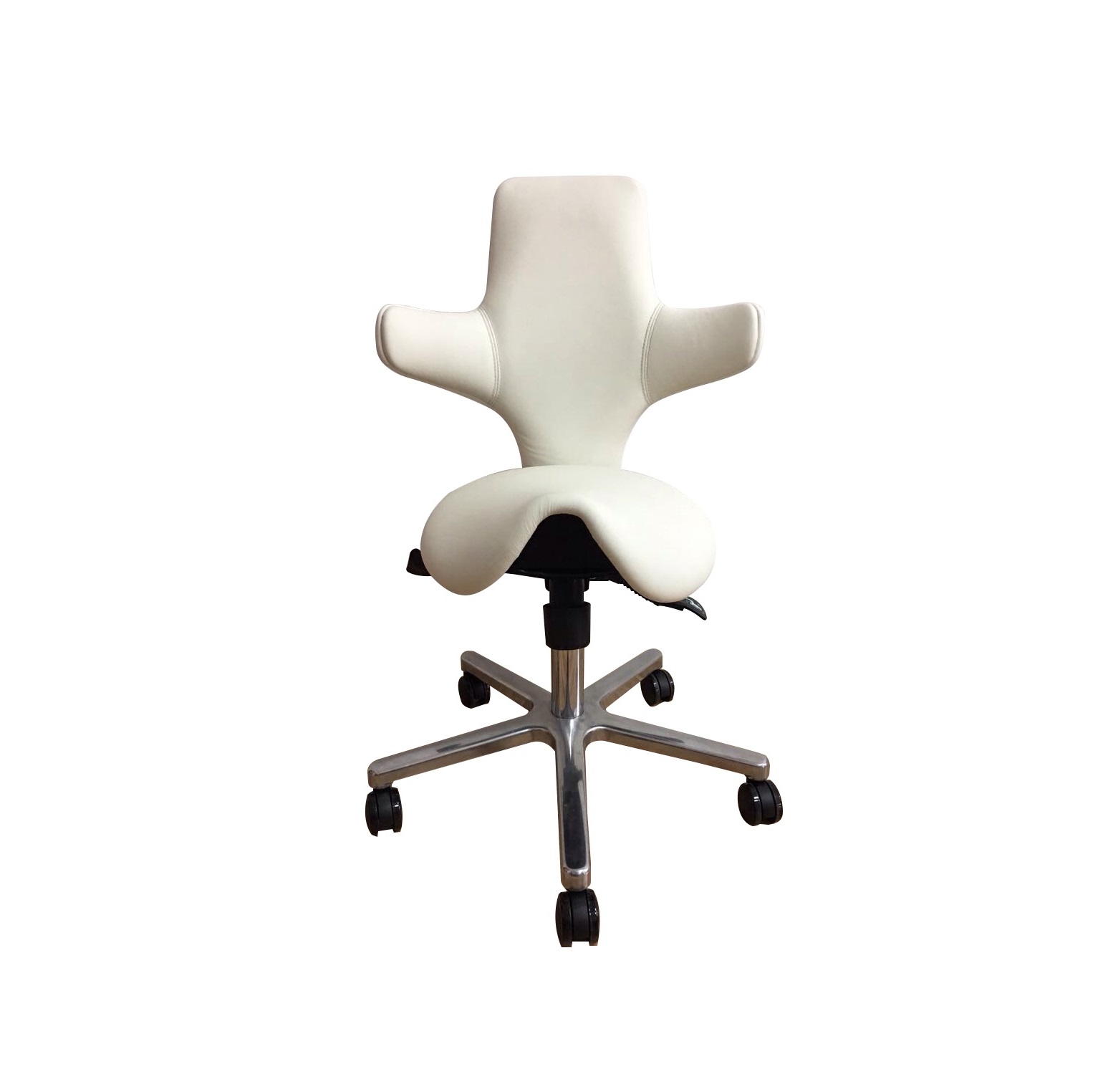 Der einzige Sattelsitz mit vollständig um den Körper drehbarer Lehne und praktischem Ring zur Höhenverstellung.