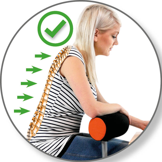 Der Stuhl mit höhen- und 360 Grad verstellbarer Lehne sowie Balancekissen zur Stärkung der Rückenmuskulatur.