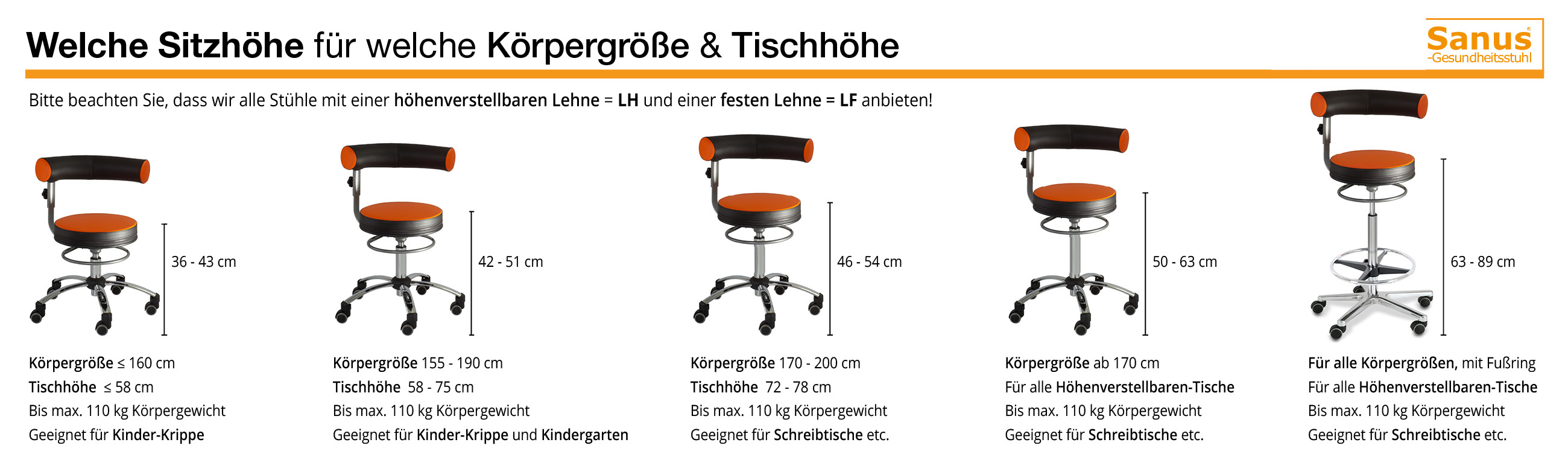 Für alle, die freies und alternatives Sitzen schätzen und problemlos die Sitzhöhe mittels eines Rings regulieren wollen.